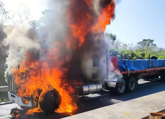 Tráiler se calcina por corto circuito en la Puebla-Orizaba