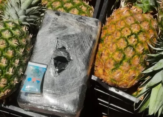 Elementos de la Guardia Nacional aseguraron un tráiler cargado con piñas en el que ocultaban paquetes con 310 kilos de…