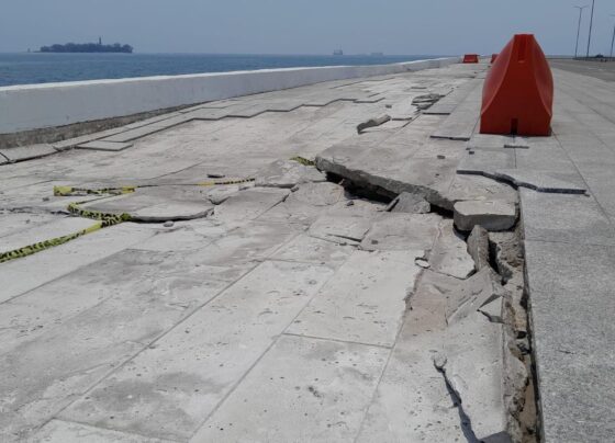 Bulevar de Boca del Río agrietado y hundido por oleaje