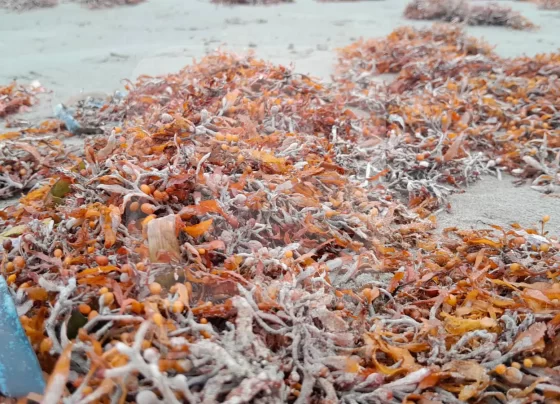 Sargazo invade playa Gaviotas, en Boca del Río