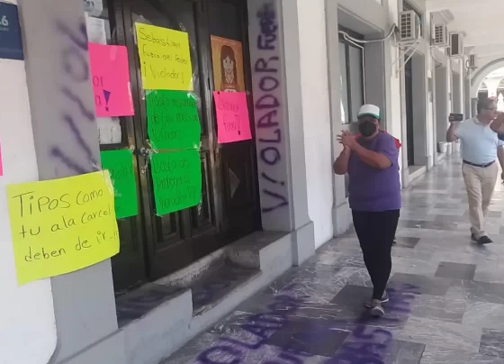 ¡Fuera violad0r!: Otra vez, mujeres hacen pintas en oficinas de Sebastián Cano