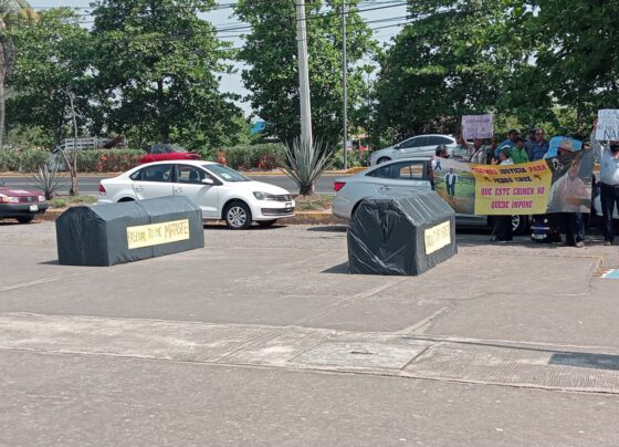 Viudas de ex trabajadores de Tamsa ponen ataúdes en Fiscalía de Veracruz; exigen justicia