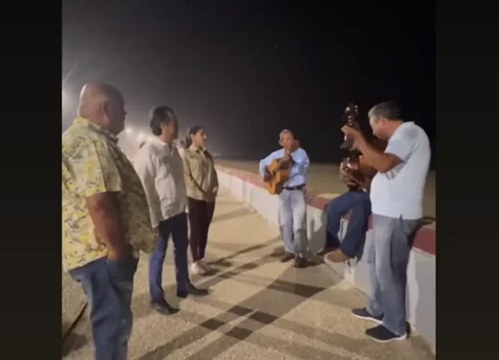 Gobernador disfruta de trío en malecón de Coatzacoalcos, Veracruz