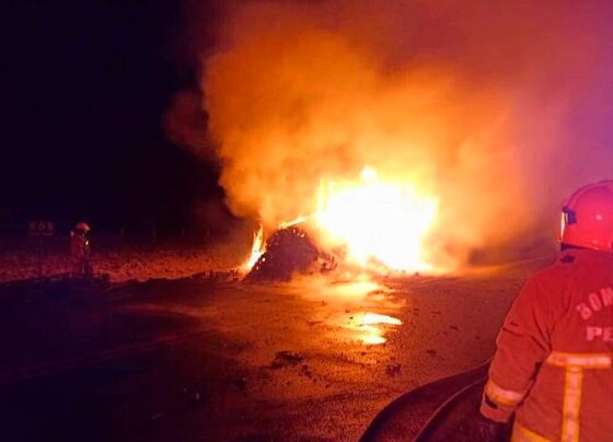 Incendio de tráiler movilizó a bomberos en carretera de Perote