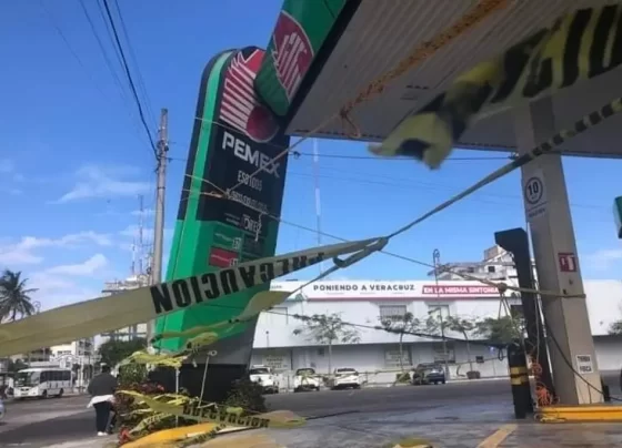 Norte daña anuncio luminoso en gasolinera de Veracruz