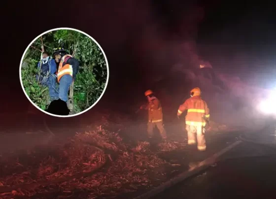 Tras incendio y volcadura, rescatan a chofer que cayó a barranco del Metlac