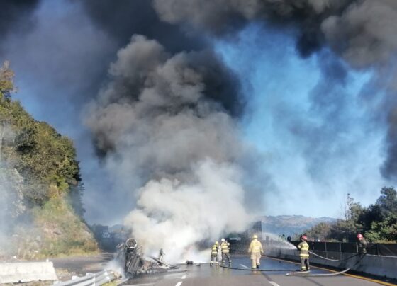 Tlacolulan, Veracruz a 08 de diciembre de 2022.- Esta mañana volcó un tráiler el cual se incendia al venir cargado…