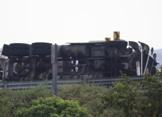 Por volcadura cierran circulación en distribuidor vial El Trébol; dirección Veracruz-Ciudad Cardel