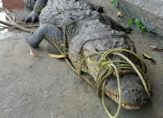 ¡Impresionante! Cocodrilo de más de cien kilos merodeaba en Coatzacoalcos