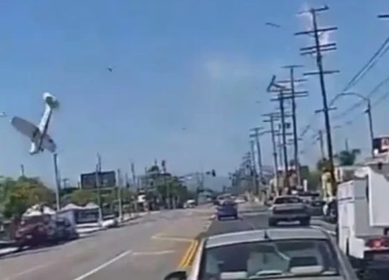Una avioneta se desplomó en la comunidad de Pacoima, en el valle de San Fernando, en Los Ángeles, Estados Unidos,…