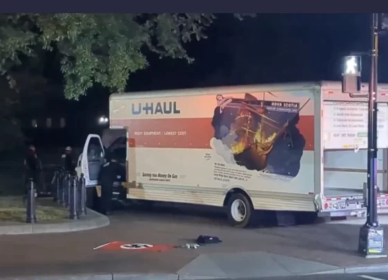 Hombre que portaba bandera nazi estrella camión contra barrera de la Casa Blanca