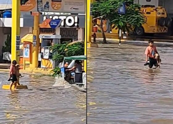 ¡Héroe! Niño rescata a perrito durante inundación
