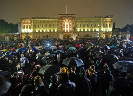 Una multitud se aproximó a las inmediaciones del Palacio de Buckingham después de confirmarse el fallecimiento de la reina…