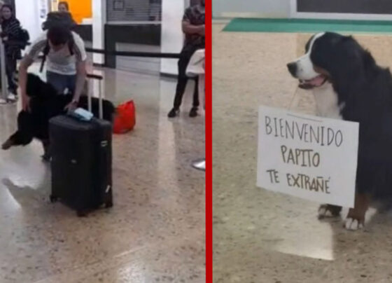 ¡Ternura total! Lomito recibe a su dueño en aeropuerto con emotivo mensaje