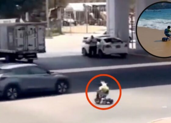 Niño de 8 años cruza en triciclo uno de los cruceros más peligrosos de Acapulco