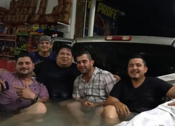 ¡Pa’mitigar la calor! Convierten camioneta en alberca en General Terán