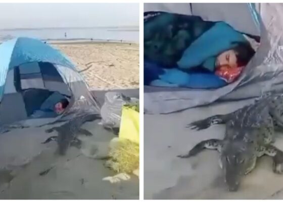 Cocodrilo sorprende a turistas durante campamento y se duerme con ellos en Jalisco