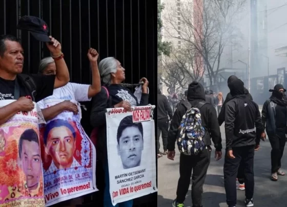 Tras casi 10 años de la desaparición de los estudiantes, compañeros de su mismo plantel protestan en las afueras de…
