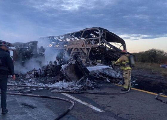Quedan 19 personas calcinadas tras el choque de un tráiler con un camión en maxipista Culiacán-Mazatlán