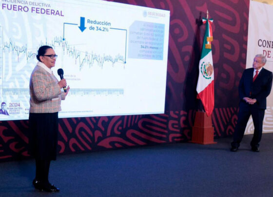 Resalta Rosa Icela disminución del 34.2% en delitos del fuero federal