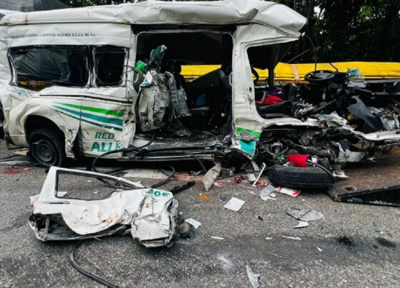 Una unidad de transporte público se estrelló con dos tráilers y quedó atorado entre ambos camiones Este martes 12 de…