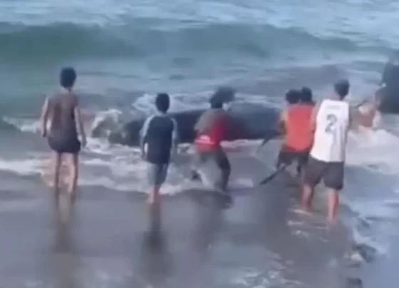 Una ballena encalló en la costa del ejido El Alacrán en Cárdenas durante el lunes, lo que generó que pobladores…