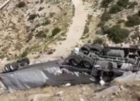 En un dramático accidente, un tráiler se precipitó en una curva de la carretera Centinela-La Rumorosa, el conductor salió con…
