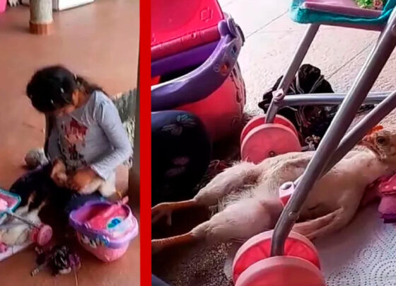 Niña utiliza pollos para jugar a las muñecas; video causa polémica