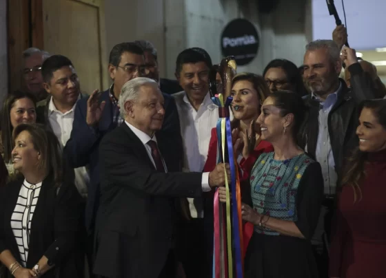 AMLO acata orden del INE de bajar de sus cuentas foto de la entrega del bastón de mando a Sheinbaum