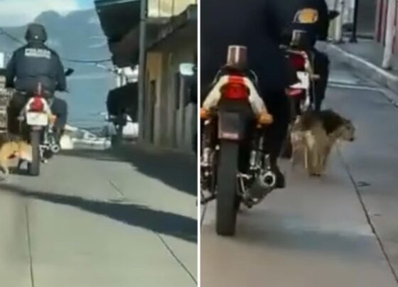 Exhiben a policía por arrastrar a un perrito con su motocicleta, exigen ayudar al animal y procesar al responsable