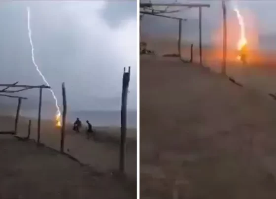 Mu3re leonesa al caerle rayo en playas de Michoacán