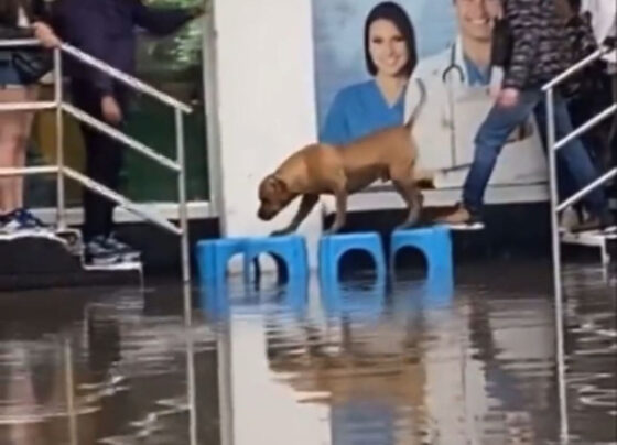 Personas crearon un puente con sillas para que pudieran cruzar junto a un perrito callejero Al menos 5 personas, entre…