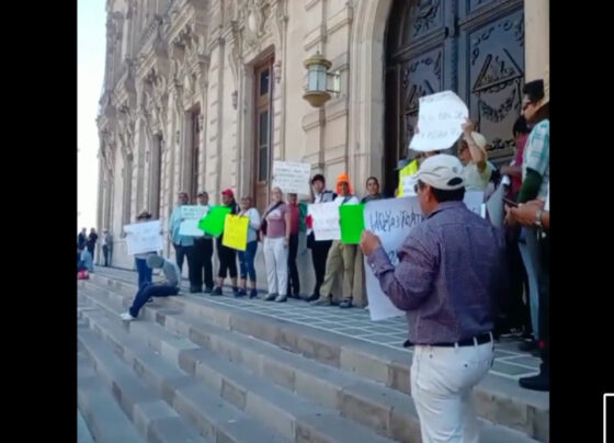Profesores y ciudadanos protestaron frente al Palacio de Gobierno para exigir a la gobernadora de Chihuahua que distribuya los libros…