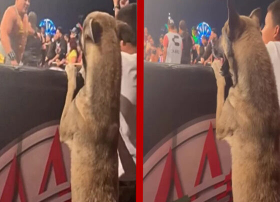 Función de lucha libre se pone ‘perra’; lomito disfruta del espectáculo en primera fila
