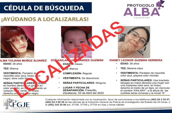 La Fiscalía General del Estado de Zacatecas emitió un tuit señalando que las dos mujeres adultas y la bebé ya…