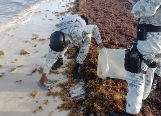 ¿’Nieve’ en el Caribe? Decomisan droga oculta entre el sargazo en playa de Quintana Roo