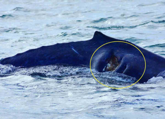Una ballena bebé quedó malherida tras haber sido atropellada por un barco y que el cetáceo se encuentra grave de…