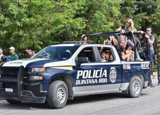 Patrullas de la policía de Cancún transportan a turistas por bloqueo de taxistas