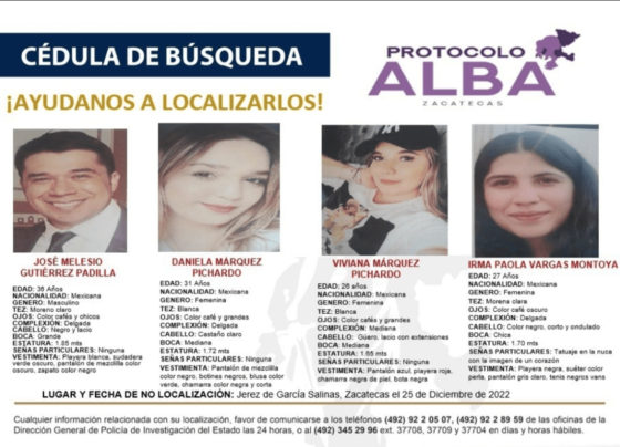 La Fiscalía de Zacatecas reportó el hallazgo de cuatro cadáveres cerca del lugar donde fue localizado el vehículo en el…