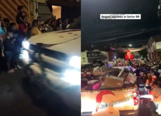 Presuntos integrantes del CJNG realizan desfile navideño y reparten regalos