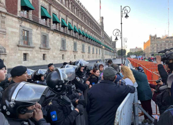 Manifestantes se brincan vallas metálicas para acercarse a Palacio Nacional