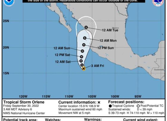 ¡Peligro! ‘Orlene’ gira hacia el noroeste y se enfila rumbo a Sinaloa y Nayarit