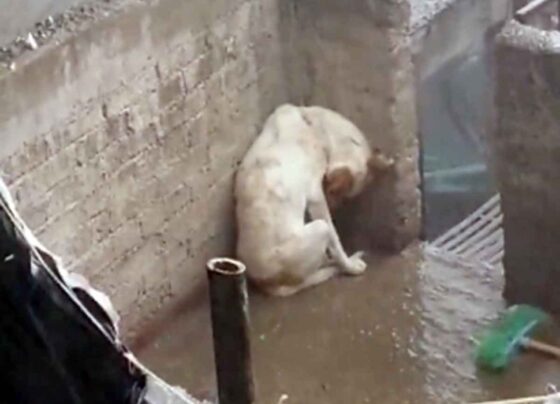 En un video se observa al animalito arrinconado en la esquina de una barda, intentando cubrirse de la lluvia y…