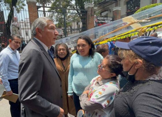 Bloquean Segob y secretario Adán Augusto sale a hablar con manifestantes