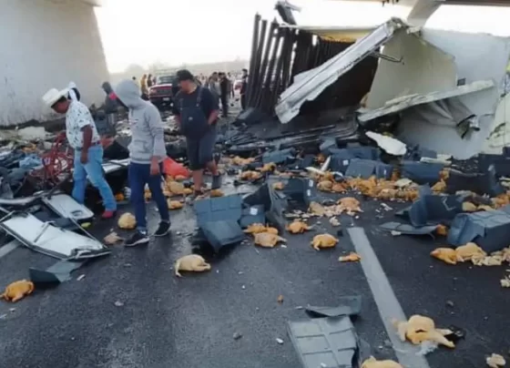 Muere chófer tras volcarse tráiler con pollo en la carretera Veracruz-Puebla
