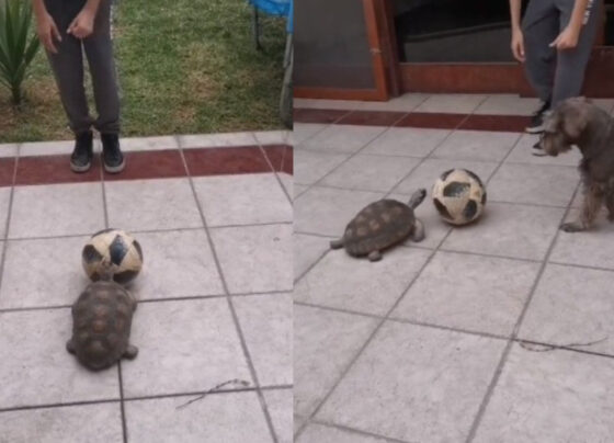 Tortuga sorprende jugando futbol y causa ternura en redes sociales