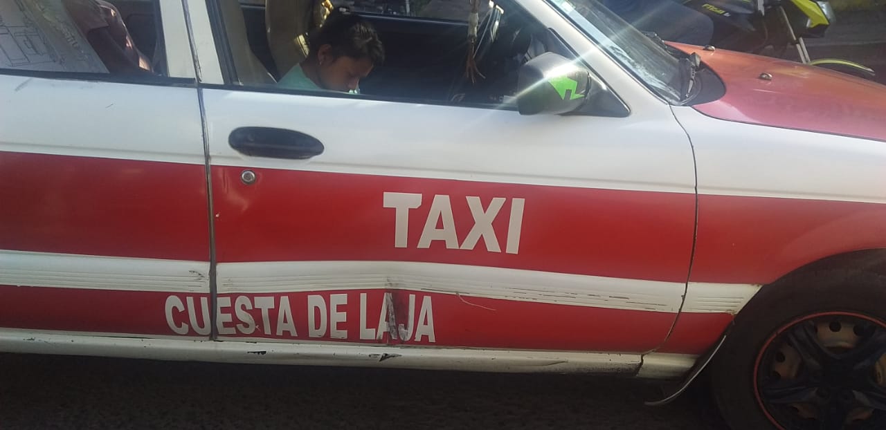 Esto ocurrió el sábado 25 de marzo minutos antes de las 5 de la tarde. De acuerdo a algunos testigos en la motocicleta tipo Italika FT125 viajaban tres personas que iban con dirección hacia Chedraui y al rebasar por la derecha a una unidad de taxi con el número económico 1271 de Cuesta de Laja qué ingresaría a la calle Alberto Tejeda, sobrevino el accidente que causó un impacto y abolladura de la puerta derecha de la unidad.