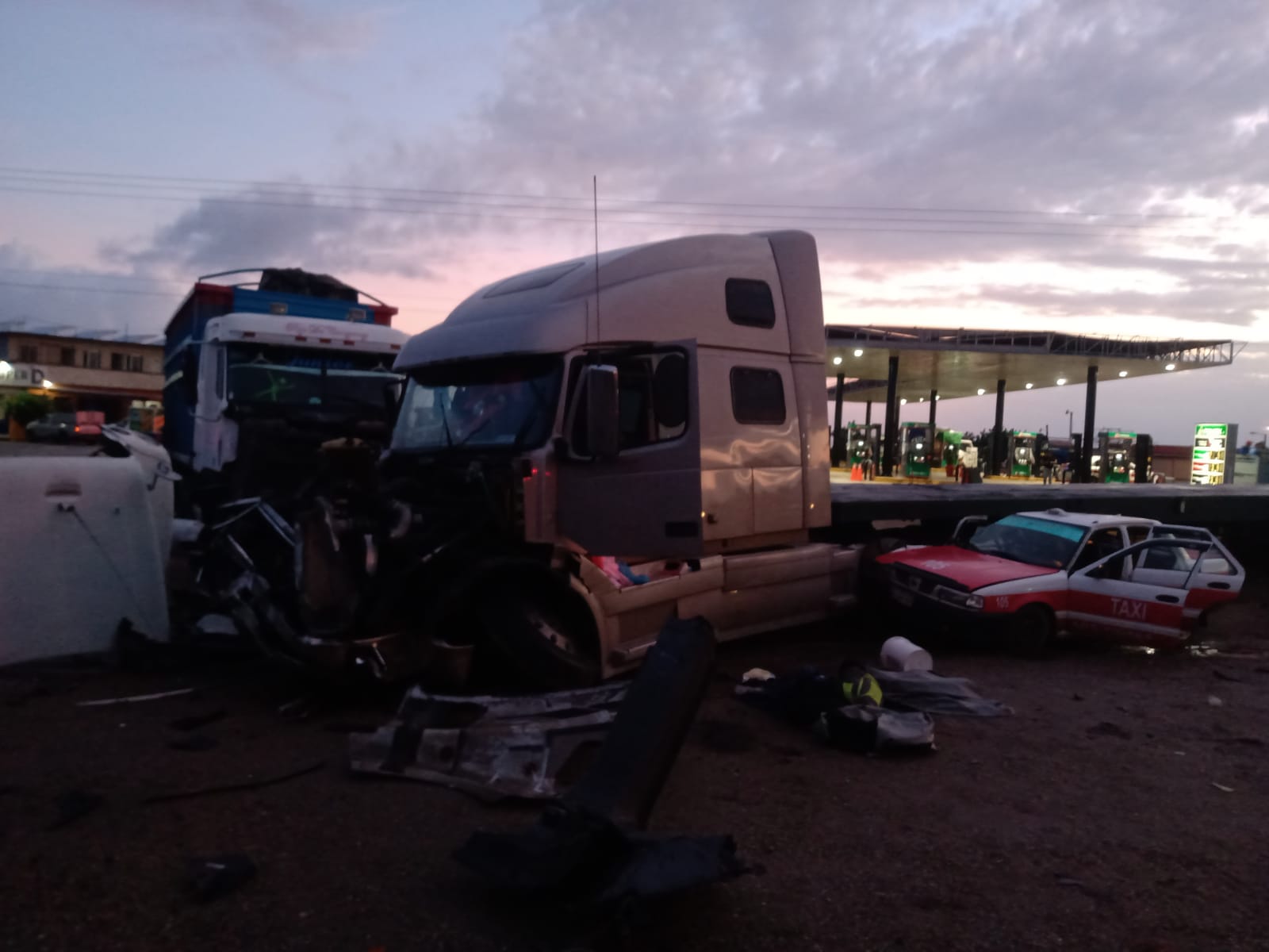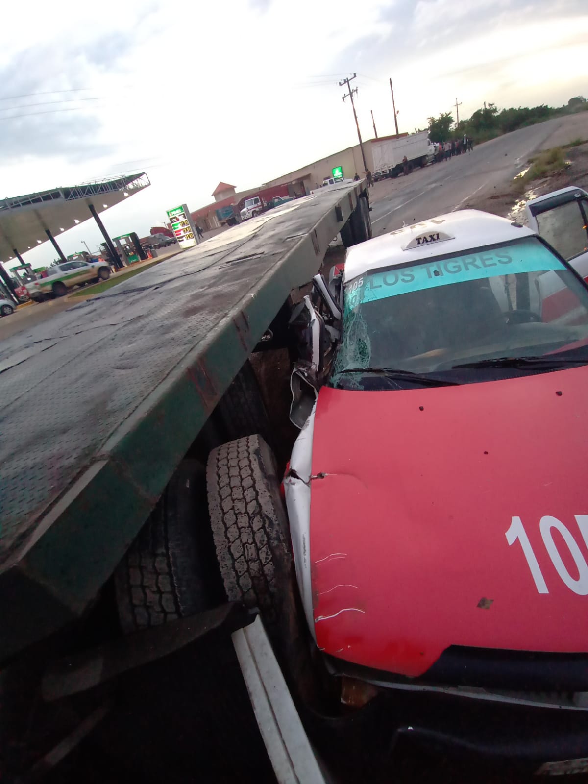De acuerdo a algunos testigos el conductor del tracto camión era perseguido por elementos de Fuerza Civil, ya que había sido detectado transportando migrantes, el conductor intentó darse a la fuga perdiendo el control de la unidad, volándose un tope golpeando a un tracto camión con plana, que a su vez golpeó al taxi marcado con número 105, del impacto el tracto camión volcó en la carretera y el conductor se dio a la fuga luego de lo acontecido .