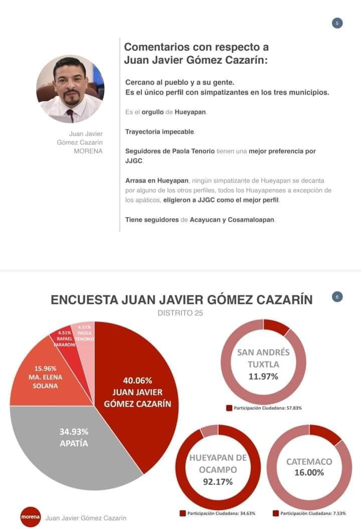 Lo que hay que destacar en estas encuestas es que una de las figuras más importantes de Morena en el estado es el diputado Juan Javier Gomez Cazarin quién también resulta muy bien posicionado, mejor que cualquier otro político del distrito.