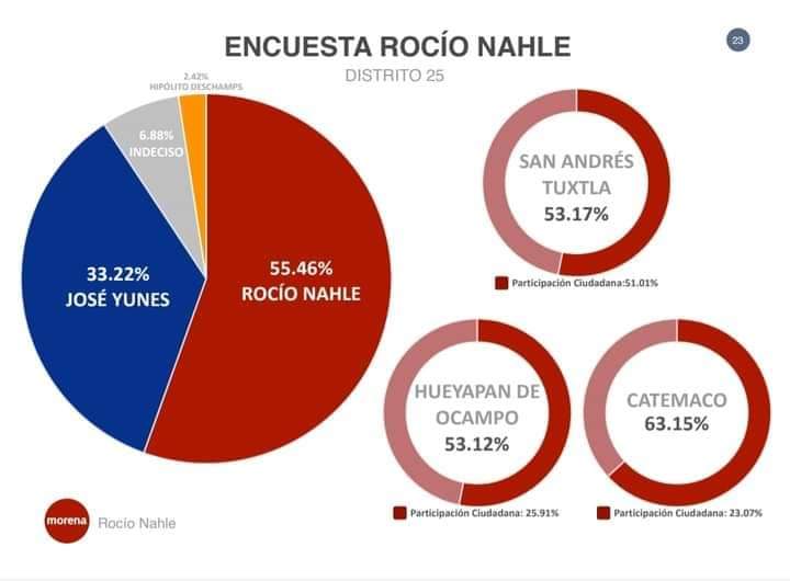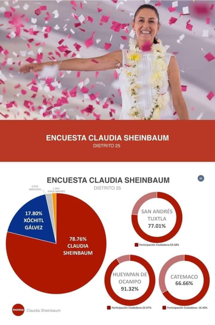 Encuestas realizadas en el distrito local número 25 con cabecera en San Andrés Tuxtla y que también comprende los municipios de Hueyapan de Ocampo y Catemaco, reflejan que Morena obtendrá un triunfo contundente el próximo 2 de Junio en esta región.